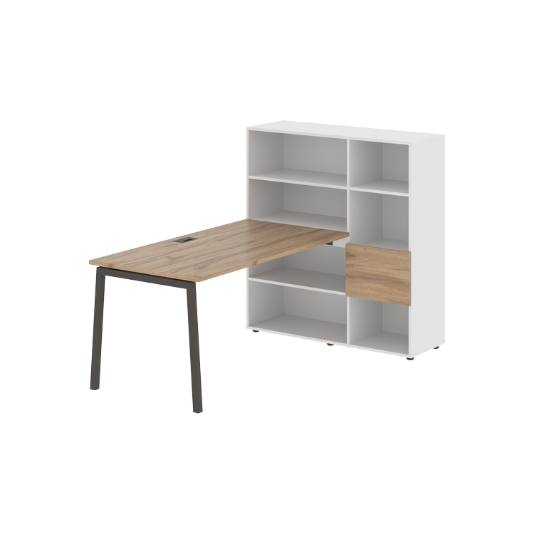 Столешница глубиной 800 мм, комплектуется регулируемой опорой L-образной формы из профиля трубы 40х40, комплектом телескопических траверс и двумя кронштейнами для крепления к стеллажу.