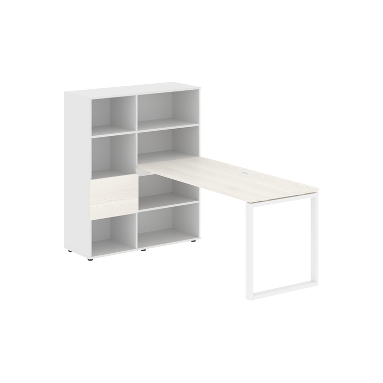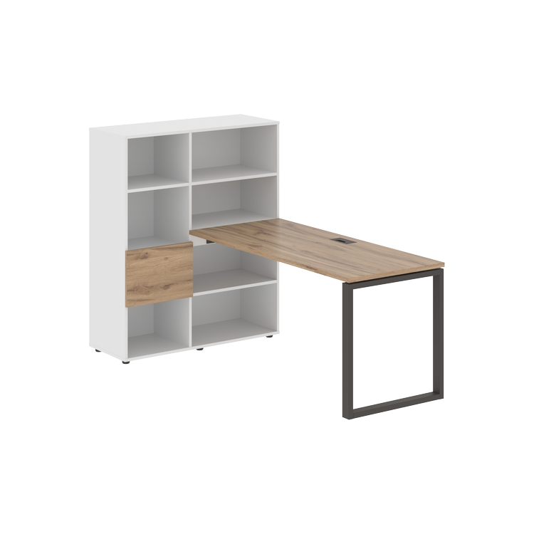 Каркасы стеллажей полностью из ЛДСП т.18 мм с кромками ПВХ т.2 и 0,45 мм, задняя стенка из ЛДСП. Комплектуется малой дверью в цвет столешницы и регулируемыми опорами h= 27 мм.
