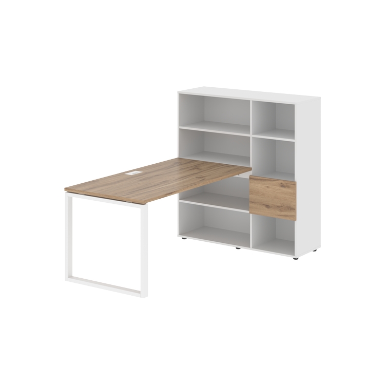 Каркасы стеллажей полностью из ЛДСП т.18 мм с кромками ПВХ т.2 и 0,45 мм, задняя стенка из ЛДСП. Комплектуется малой дверью в цвет столешницы и регулируемыми опорами h= 27 мм.