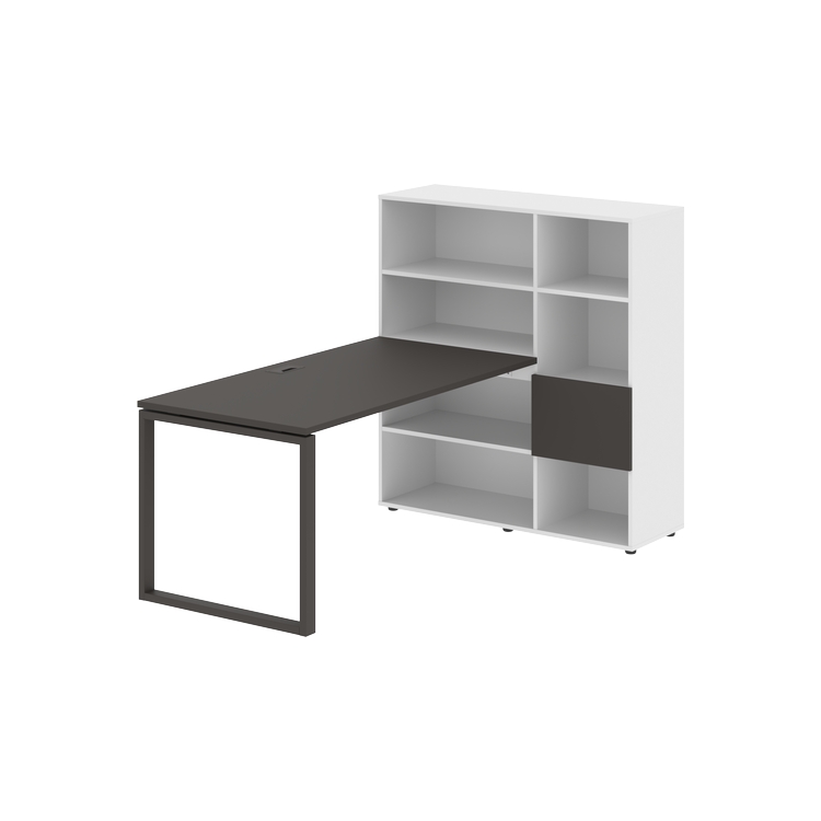 Столешница глубиной 800 мм, комплектуется регулируемой опорой О-образной формы из профиля трубы 60х30, комплектом телескопических траверс и двумя кронштейнами для крепления к стеллажу.
