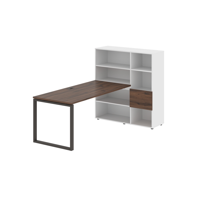 Каркасы стеллажей полностью из ЛДСП т.18 мм с кромками ПВХ т.2 и 0,45 мм, задняя стенка из ЛДСП. Комплектуется малой дверью в цвет столешницы и регулируемыми опорами h= 27 мм.