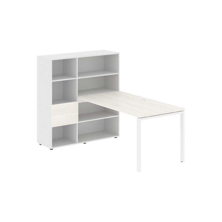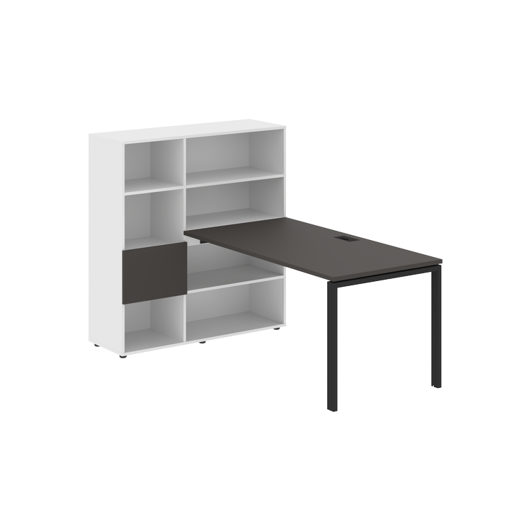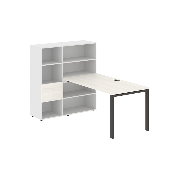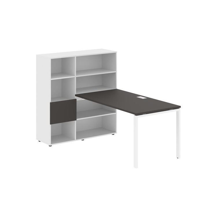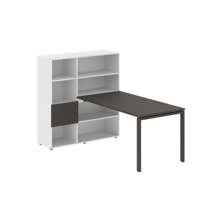 Столешница глубиной 800 мм, комплектуется регулируемой опорой П-образной формы из профиля трубы 60х30, комплектом телескопических траверс и двумя кронштейнами для крепления к стеллажу.