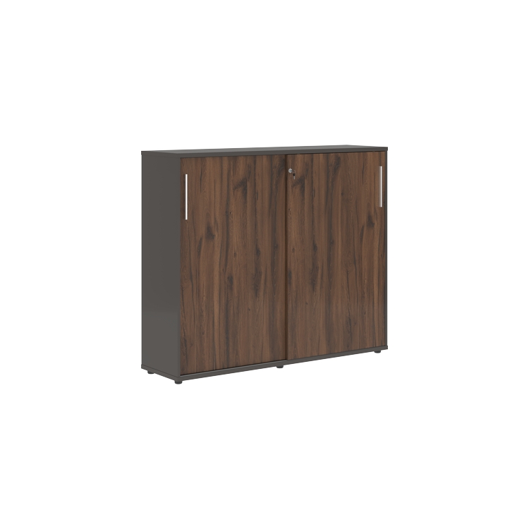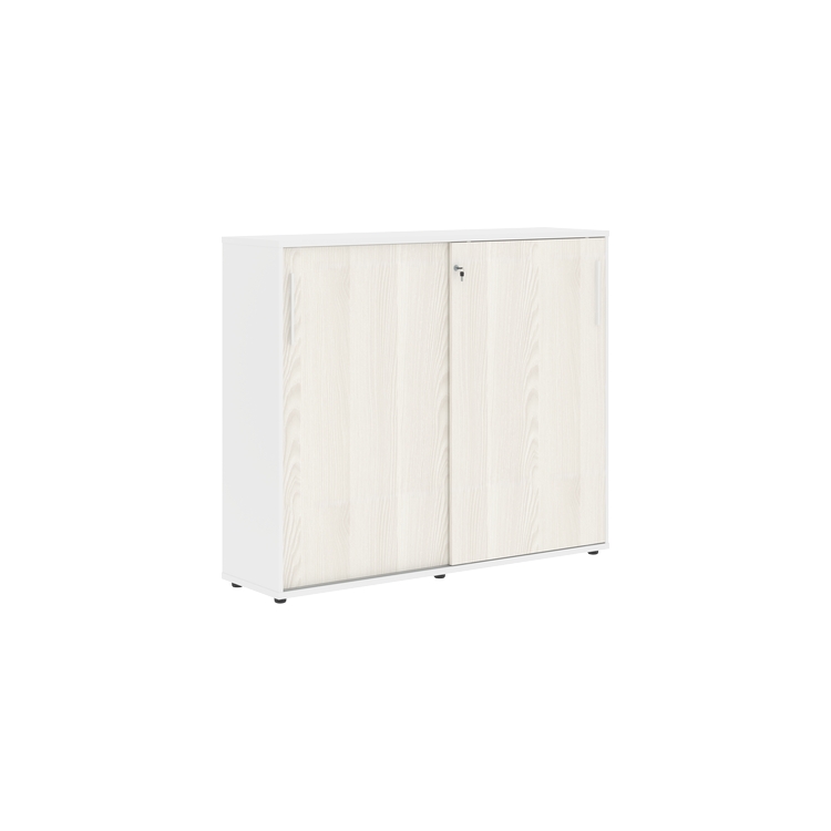 Шкаф комплектуется центральным замком для одновременного закрывания двух дверей, регулируемыми опорами h=27 мм и металлическими ручками.