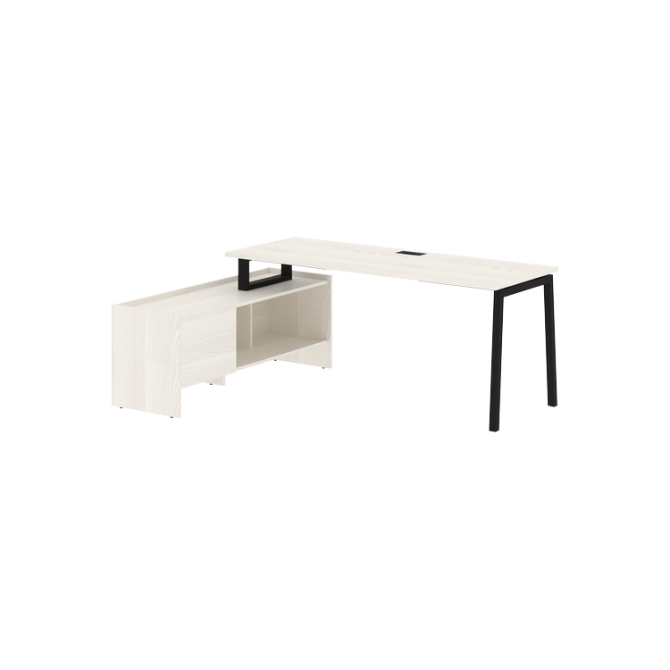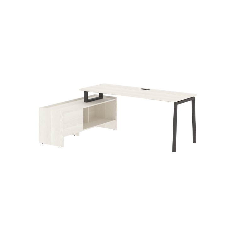 Столешница глубиной 670мм из ЛДСП т.25 мм с кромками ПВХ по периметру т.2 мм. Комплектуется металлическим кабель-каналом габаритом 160х80х25 мм.
