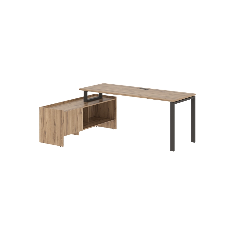 Столешница глубиной 670 мм из ЛДСП т.25 мм с кромками ПВХ по периметру т.2 мм. Комплектуется металлическим кабель-каналом габаритом 160х80х25 мм.