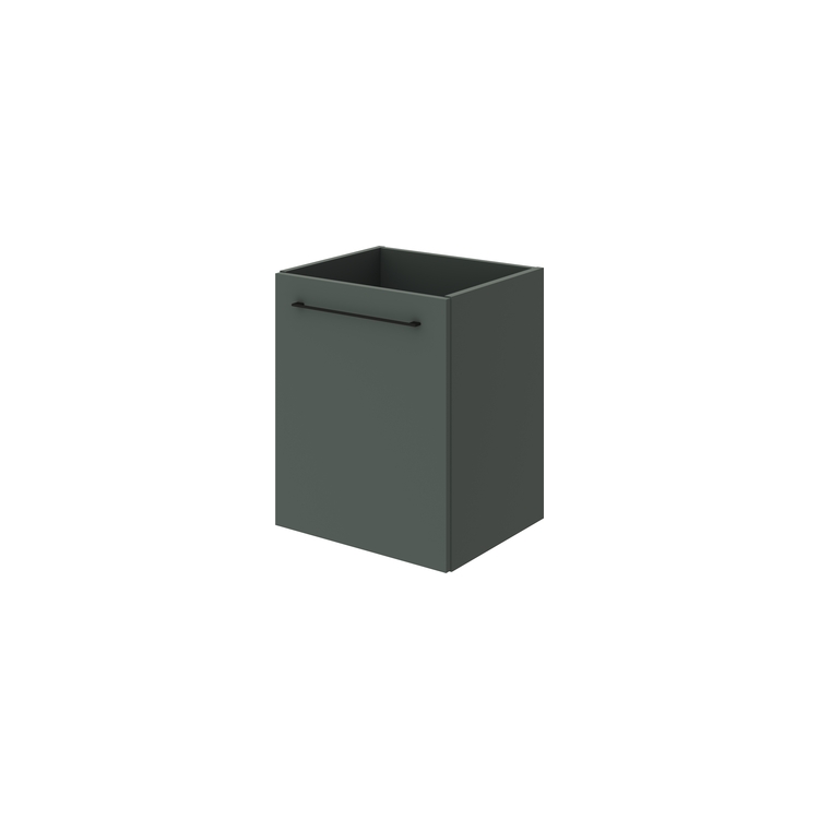 Дверь открывается направо, выполнена из ЛМДФ Зеленый камень 18 мм с поверхностью PerfectSense Matt с лицевой стороны, торцы облицованы противоударной кромкой ABS 1мм PerfectSense Matt. Полка регулируется по уровню.